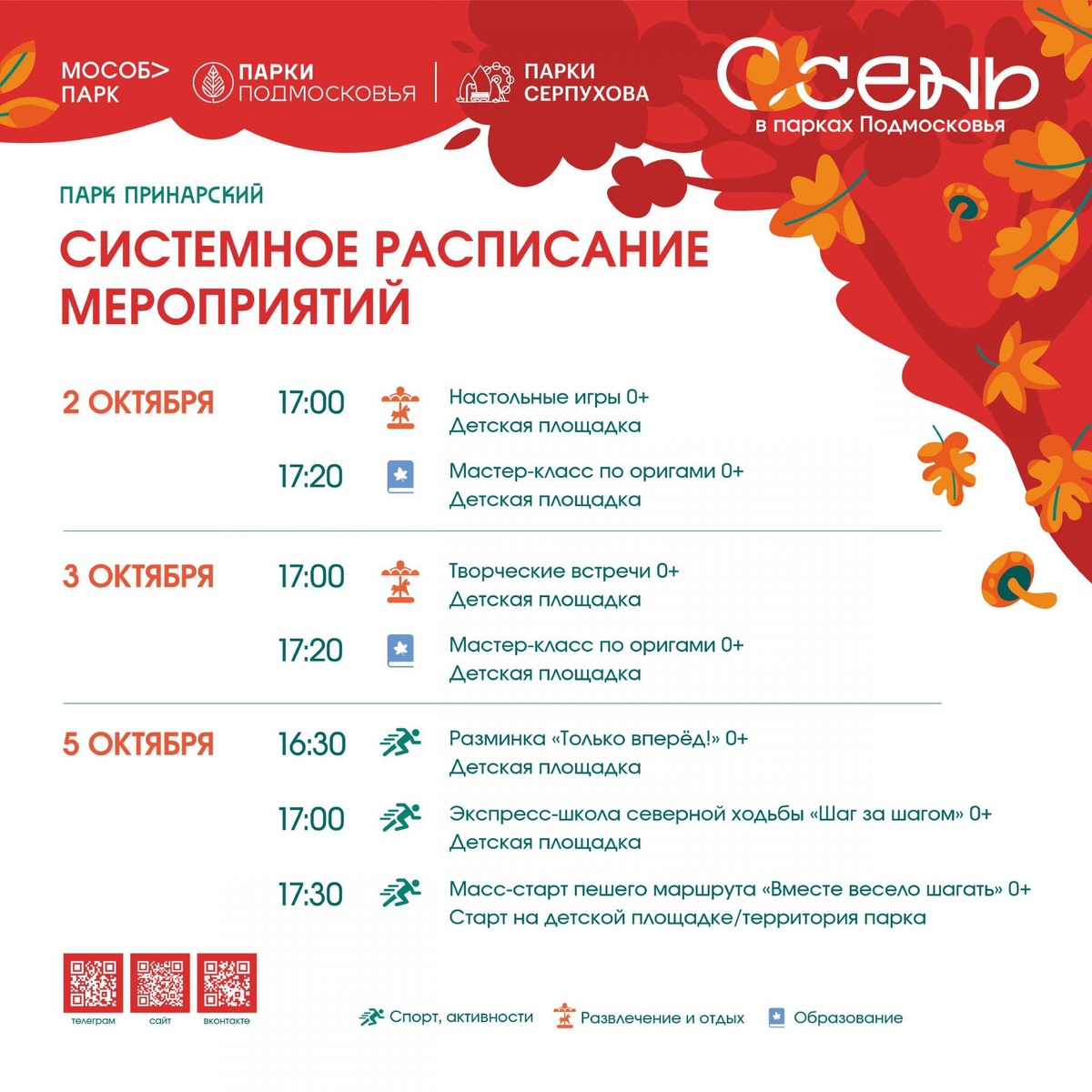 ✨ Расписание в парке на эту неделю Ждём Вас в парке 💟 ☔Мероприятия проходят по условиям 💰 Вход свободный❗️ ⭐Поддержать канал голосом 💰 Вакансия - курьер в Серпухове ✅ Мероприятия Серпухов https://dzen.ru/id/66f01c6eb4c6fe60c9ca1608 http://vk.com/serpukhov_events http://dzen.ru/serpukhov_events
