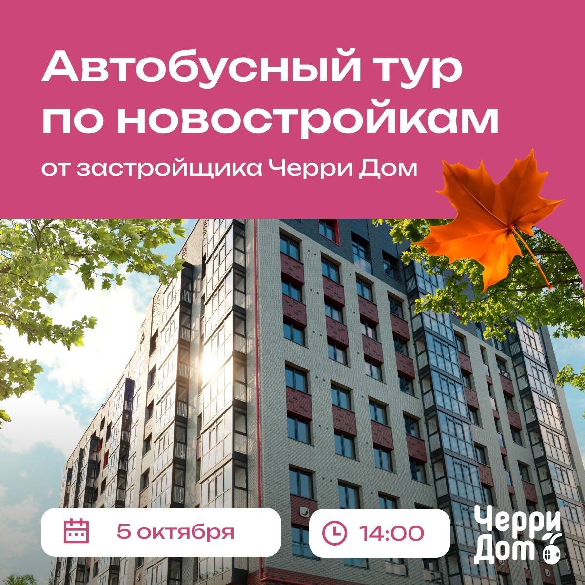 🚘 Едем в ТУР! Дома, в которые захочется прийти вновь. Арт-объекты, дворы, о которых говорят — все это про Черри 🍒 В воскрсенье 5 октября приглашаем вас в тур по новостройкам ЧерриДом. Всего за один вечер вы побываете в наших уникальных пространствах. Это не просто экскурсия — это прогулка по разным стилям жизни, которые мы создаём в Вологде. ‼️Старт в 14:00 в офисе продаж (улица Республиканская 14, корпус 1) Бесплатная запись: +7 (8172) 701-701