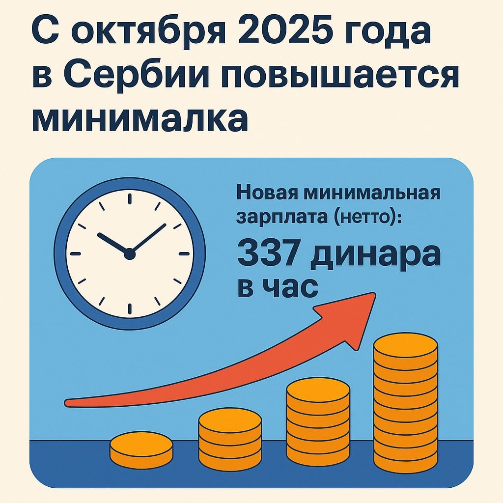 π’ ΠΠ°ΠΏΠΎΠΌΠΈΠ½Π°Π΅ΠΌ, ΡΡΠΎ Ρ ΠΎΠΊΡΡΠ±ΡΡ 2025 Π³ΠΎΠ΄Π° Π² Π‘Π΅ΡΠ±ΠΈΠΈ ΠΏΠΎΠ²ΡΡΠ°Π΅ΡΡΡ ΠΌΠΈΠ½ΠΈΠΌΠ°Π»ΠΊΠ° Π‘ 1 ΠΎΠΊΡΡΠ±ΡΡ 2025 Π³ΠΎΠ΄Π° ΠΌΠΈΠ½ΠΈΠΌΠ°Π»ΡΠ½Π°Ρ ΡΠ΅Π½Π° ΡΡΡΠ΄Π° ΡΠΎΡΡΠ°Π²ΠΈΡ 337 Π΄ΠΈΠ½Π°ΡΠ° Π½Π΅ΡΡΠΎ Π·Π° ΡΠ°Ρ (ΡΠ°Π½ΡΡΠ΅ Π±ΡΠ»ΠΎ 308). ΠΡΠΎ Π·Π½Π°ΡΠΈΡ, ΡΡΠΎ ΠΌΠΈΠ½ΠΈΠΌΠ°Π»ΠΊΠ° Π²ΡΡΠΎΡΠ»Π° Π½Π° 9,42%. π° ΠΠΎΠ²Π°Ρ ΠΌΠΈΠ½ΠΈΠΌΠ°Π»ΡΠ½Π°Ρ Π·Π°ΡΠΏΠ»Π°ΡΠ° (Π½Π΅ΡΡΠΎ): ΠΠΊΡΡΠ±ΡΡ β 62.008 Π΄ΠΈΠ½. (184 ΡΠ°ΡΠ°) ΠΠΎΡΠ±ΡΡ β 53.920 Π΄ΠΈΠ½. (160 ΡΠ°ΡΠΎΠ²) ΠΠ΅ΠΊΠ°Π±ΡΡ β 62.008 Π΄ΠΈΠ½. (184 ΡΠ°ΡΠ°) π ΠΠΎΠ²Π°Ρ ΠΌΠΈΠ½ΠΈΠΌΠ°Π»ΡΠ½Π°Ρ Π·Π°ΡΠΏΠ»Π°ΡΠ° (Π±ΡΡΡΡΠΎ): ΠΠΊΡΡΠ±ΡΡ β 84.401 Π΄ΠΈΠ½. ΠΠΎΡΠ±ΡΡ β 72.864 Π΄ΠΈΠ½. ΠΠ΅ΠΊΠ°Π±ΡΡ β 84.401 Π΄ΠΈΠ½. βοΈ ΠΡΠ΅ Π²ΡΠΏΠ»Π°ΡΡ Π·Π° ΡΠ΅Π½ΡΡΠ±ΡΡ ΠΈ ΡΠ°Π½ΡΡΠ΅ ΡΡΠΈΡΠ°ΡΡΡΡ ΠΏΠΎ ΡΡΠ°ΡΠΎΠΉ ΡΡΠ°Π²ΠΊΠ΅ (308 Π΄ΠΈΠ½/ΡΠ°Ρ). Π‘ ΠΎΠΊΡΡΠ±ΡΡ β ΡΠΆΠ΅ ΠΏΠΎ Π½ΠΎΠ²ΠΎΠΉ (337 Π΄ΠΈΠ½/ΡΠ°Ρ). π‘ Π‘ 1 ΡΠ½Π²Π°ΡΡ 2026 Π³ΠΎΠ΄Π° Π·Π°ΠΏΠ»Π°Π½ΠΈΡΠΎΠ²Π°Π½ΠΎ Π½ΠΎΠ²ΠΎΠ΅ ΠΏΠΎΠ²ΡΡΠ΅Π½ΠΈΠ΅ ΠΌΠΈΠ½ΠΈΠΌΠ°Π»ΡΠ½ΠΎΠΉ Π·Π°ΡΠΏΠ»Π°ΡΡ π ΠΡΠ°Π²Π΄Π° ΡΠΎΠ³Π΄Π° ΡΠ²Π΅Π»ΠΈΡΠΈΡΡΡ ΠΈ Π½Π΅ΠΎΠ±Π»Π°Π³Π°Π΅ΠΌΠ°Ρ Π½Π°Π»ΠΎΠ³ΠΎΠΌ ΡΠ°ΡΡΡ Π΄ΠΎΡ