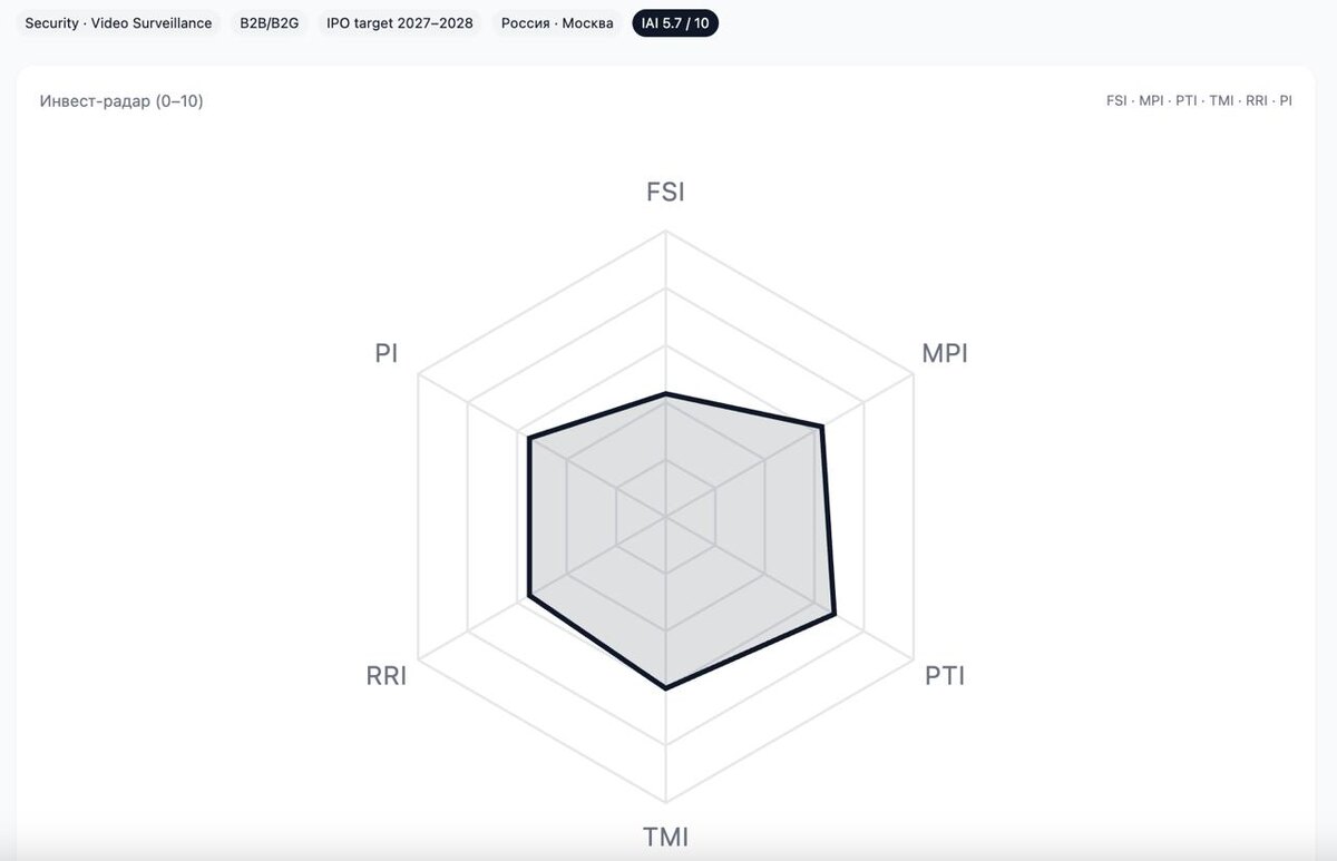 SciArticle: Индекс инвестиционной привлекательности (IAI) Совместно с rost.vc мы разработали IAI — интегральный индекс для экспресс оценки технологических компаний. 🚀 Он переводит чек-листы, СМИ, научные публикацияи, патенты и отчеты в количественные метрики, ускоряя прескрининг и скоринг. Методология опирается на проверенные стандарты: CCC, HHI (US DOJ/FTC), NPS (Bain), TRL (NASA), принципы CG (G20/OECD). IAI объединяет шесть субиндексов: 1) FSI — Финансовая устойчивость и качество прибыли Меряет денежность и долговую устойчивость: YoY рост выручки, чистая маржа, OpCF/Revenue, CCC, Net Debt/EBITDA, Interest Coverage. 2) MPI — Рыночный потенциал и динамика Учитывает ёмкость и темпы рынка, диверсификацию стран и каналов (B2G/B2B/B2E/B2C), конкуренцию (HHI), лояльность (NPS). 3) PTI — Технологичность TRL (1–9), портфель и горизонт IP, R&D/Revenue, внутренний ITC. Подробный разбор этого индекса мы публиковали ранее. 4) TMI — Команда и управление Фокус на опыте лидеров, независимых ди