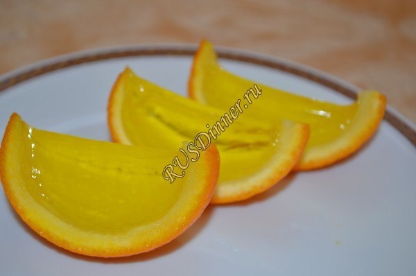 Желе в апельсинах От автора: Желе в апельсинах - это отличная форма подачи желе, вашим детям будет довольно интересно. Данный красочный и не обычный десерт будет просто находкой, для того кто хочет украсить свой праздничный стол чем-то не обычным. На это украшение нужно будет минимум ингредиентов, а результат получится восхитительным. Можно использовать и желе других цветов, если взять, например, желе зеленого цвета, то эффект получится еще больше, а стол будет еще краше. В этом кулинарном рецепте, я использовала купленное в магазине быстрорастворимое желе, но приготовить желе самостоятельно очень просто, можете посмотреть способ приготовления желе в пошаговом рецепте «Желе двухслойное». Ингредиенты: Желе - 50 гр. Апельсины - 300 гр. (2 шт.) Источник: https://rusdinner.ru/page/zhele-v-apelsinah