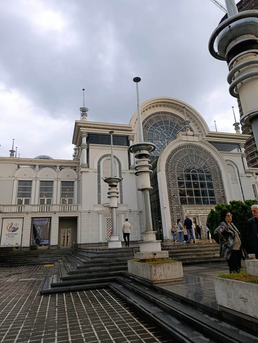 Посещение Батумского арт-центра стало для меня одним из самых ярких и запоминающихся впечатлений за всё время пребывания в этом удивительном городе. Я давно слышал о том, что это не просто театр, а настоящее культурное сердце Батуми — но даже самые смелые ожидания не подготовили меня к тому, насколько впечатляющим окажется само здание и атмосфера внутри. Уже подходя к входу, я почувствовал, что попадаю в особое пространство — нечто среднее между дворцом, галереей и театром. Фасад здания выглядит современно и элегантно, но настоящая магия начинается внутри. Интерьер поражает своей насыщенной и гармоничной цветовой гаммой: глубокий бархатистый красный, строгий чёрный и сияющее золото переплетаются в едином ансамбле, создавая ощущение роскоши и утончённости. Каждая деталь — от обивки кресел до оформления лестниц — продумана с невероятным вкусом и вниманием к эстетике. Особенно меня поразил витражный потолок. Он словно парит над залом, наполняя пространство мягким, переливающимся светом.
