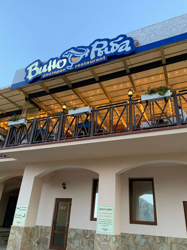 В это время года выбор заведений в Новом Свете небольшой. По сути работают всего три ресторана: 1. "Вино и рыба" в отеле "Винтаж" . Основные блюда интересны больше гостям, чем крымчанам: устрицы, камбала, барабулька, рапаны, мидии: 2. "Екатерина". Ресторан с видом на море. В прошлом году мы здесь пробовали том-ям, форель с овощами, и ещё что-то интересное, но в этом году мы в меню ничего заманчивого для себя не нашли, поэтому отправились в... 3. "Пеките печи". Мы выбрали столик на террасе: Официант принёс меню: Мы выбрали то, что дома не приготовим:) Володя заказал цыпленка чкмерули в сковородке с картофелем и сливочно- чесночным соусом: А я - Боул с курицей. Он состоит из авокадо, киноа, кинза, томаты черри, куриного филе, чука, бобы эдамаме, кунжут, ромен, айсберг, соус ореховый И тёплый салат из хрустящих баклажанов. Всю эту вкуснотищу запивали малиновым чаем: *** Искренне и от души поблагодарили повара и официанта. *** Домой возвращались с прекрасным чувством нас