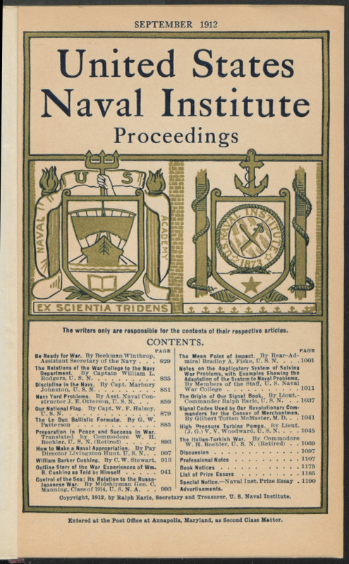 Перевод с англ. яз. 1-й и 2-й частей статьи коммодора (в отставке) военно-морского флота США У. Х. Билера, написанной по горячим следам событий в июне и сентябре 1912 г., из журнала US Naval Institute proceedings, Vol.38/2/142-143.
