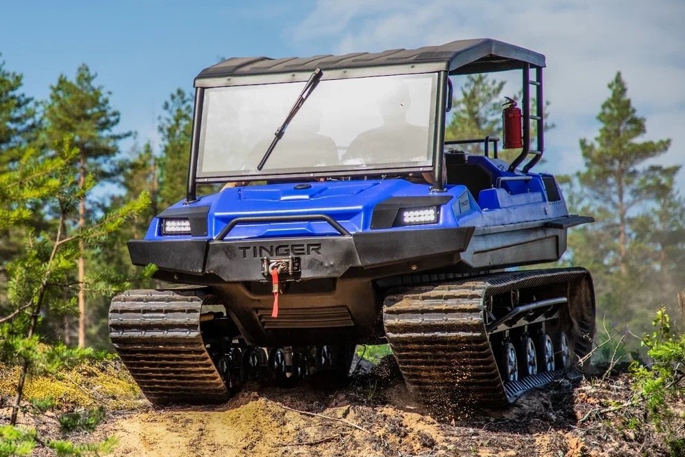 Когда речь заходит о покорении настоящего бездорожья — бескрайних болот, глубокого снега, топких рек и озёр — на сцену выходит специальная техника, для которой не существует преград. Одним из ярких представителей этого класса является российский плавающий гусеничный вездеход Tinger Track — машина, созданная для тех, кто работает и путешествует в самых экстремальных условиях. Универсальный солдат бездорожья Tinger Track — это не просто автомобиль, это высокомобильная платформа на гусеничном ходу, способная передвигаться по суше и воде. Его ключевые преимущества — это феноменальная проходимость и плавучесть. Благодаря широким гусеницам и низкому удельному давлению на грунт (всего около 0,1–0,2 кгс/см²), вездеход с лёгкостью преодолевает болота, снежную целину, песок и крутые подъёмы, не проваливаясь и не застревая. Попадая в воду, Tinger Track не останавливается. За счет герметичного корпуса-лодки и движения гусениц он уверенно держится на плаву и может пересекать водные пре
