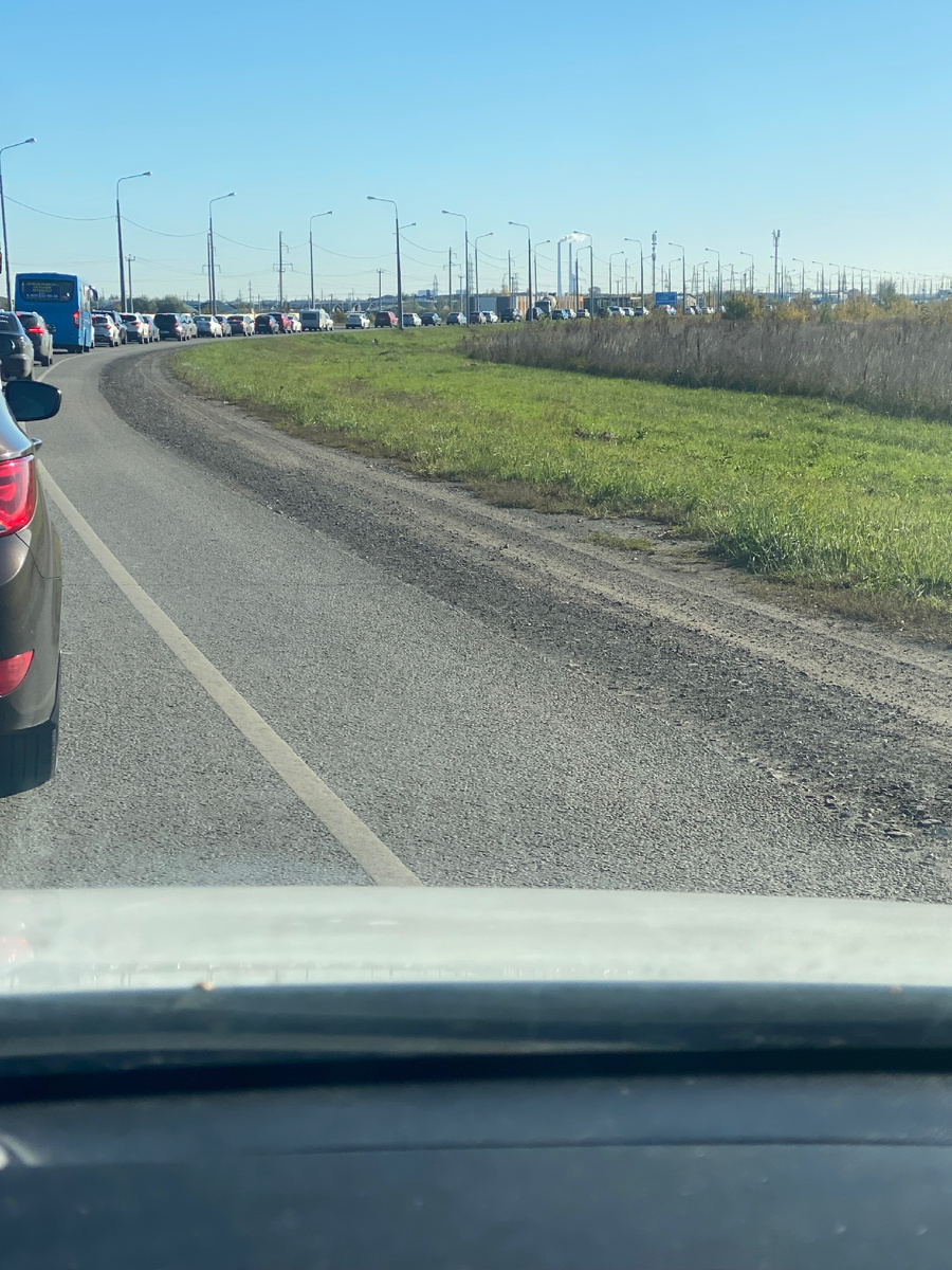 По нашей дороге была сильная авария, что пробка тянулась от дома до места аварии.