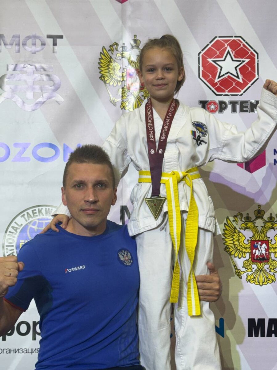 Несколько дней назад наша звездочка приняла участие в Чемпионате и Первенстве России по тхэквондо МФТ в Санкт-Петербурге и заняла 1-е место!!! Какая молодец! 🥇