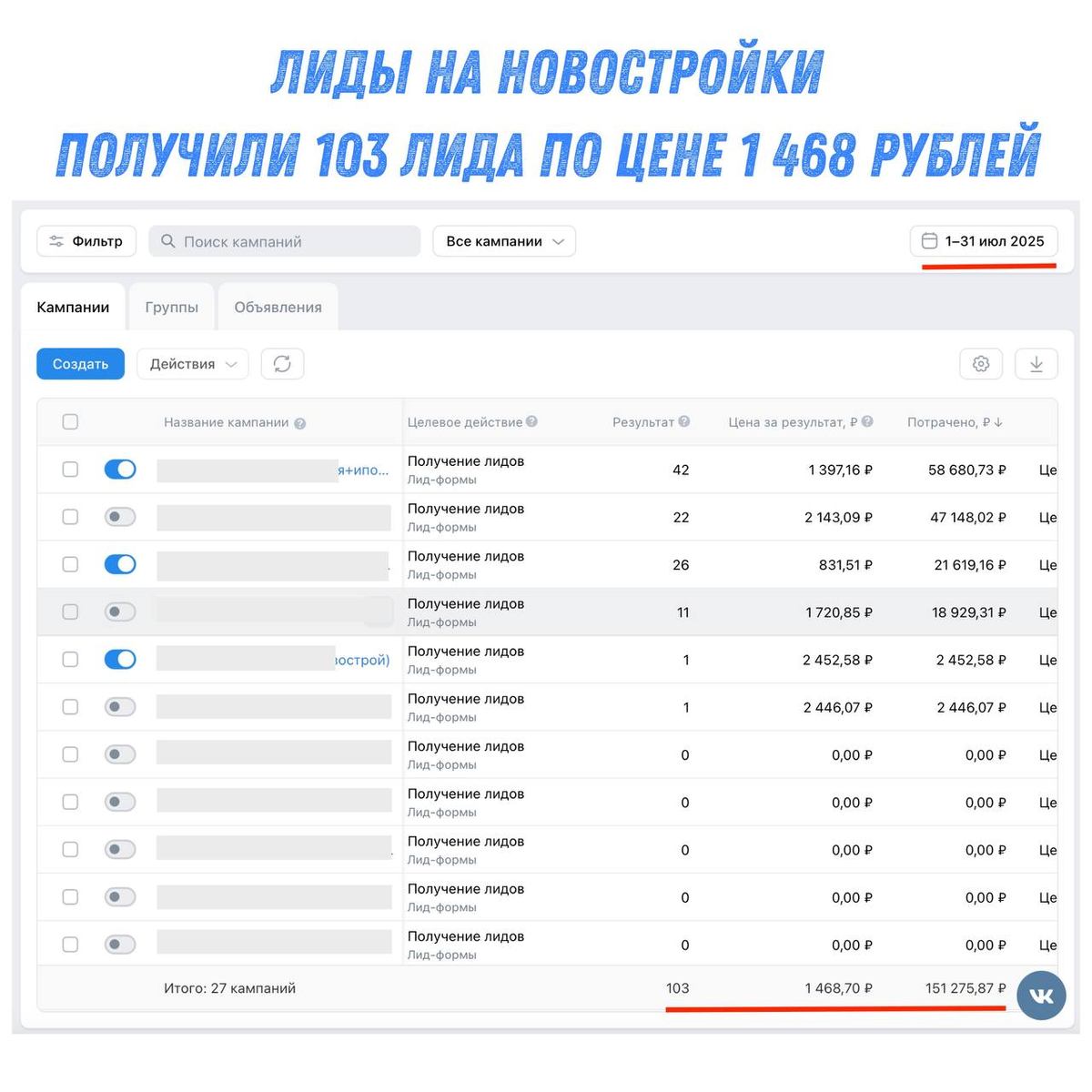 По цене лида еще моменты. Какие-то кампании цену лида повысили, как и писал, примерно до 2 000 рублей, а какие-то вообще их не давали несколько дней.