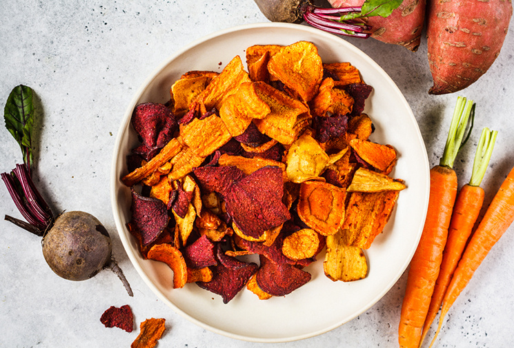 Домашние чипсы из корнеплодов — это вкусный и полезный перекус, который легко приготовить дома. Они являются отличной альтернативой покупным картофельным чипсам, так как готовятся без консервантов и лишнего масла. Использование разных корнеплодов, таких как свёкла, морковь, пастернак и топинамбур, делает вкус разнообразным и ярким, а процесс приготовления увлекательным для всей семьи. Главное преимущество домашних чипсов — возможность контролировать состав и количество соли и масла, делая перекус максимально полезным. Нарезка овощей тонкими кружочками позволяет им быстро высохнуть и стать хрустящими, при этом сохраняются витамины и полезные вещества. Для вкуса можно добавить любимые специи и травы, например, паприку, тимьян или розмарин, чтобы каждый раз получать новый аромат и оттенок вкуса. 1. Чипсы из свёклы и моркови