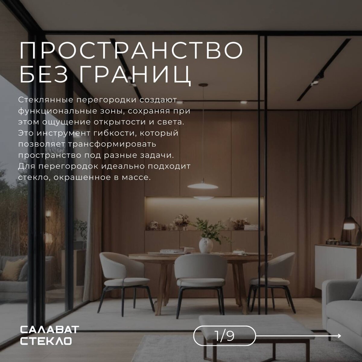 Стекло в интерьере — баланс эстетики и функциональности ✨ Стеклянные и зеркальные конструкции — это ключ к созданию современных интерьеров. Они объединяют пространство, добавляют света и делают его более гибким и функциональным. Салаватстекло предлагает решения, которые помогают дизайнерам создавать интерьер будущего уже сегодня: 🔹 Ultraview — идеально прозрачное стекло, подчёркивающее лёгкость и свет в жилых и общественных пространствах. 🔹 Стекло, окрашенное в массе — выразительные оттенки для мебели, перегородок и архитектурных деталей. 🔹 Mirroline — коллекция зеркал, делающая интерьер стильным, функциональным и более просторным. Мы собрали главные направления, которые формируют интерьер завтрашнего дня. Подробнее — в карточках ⬆️