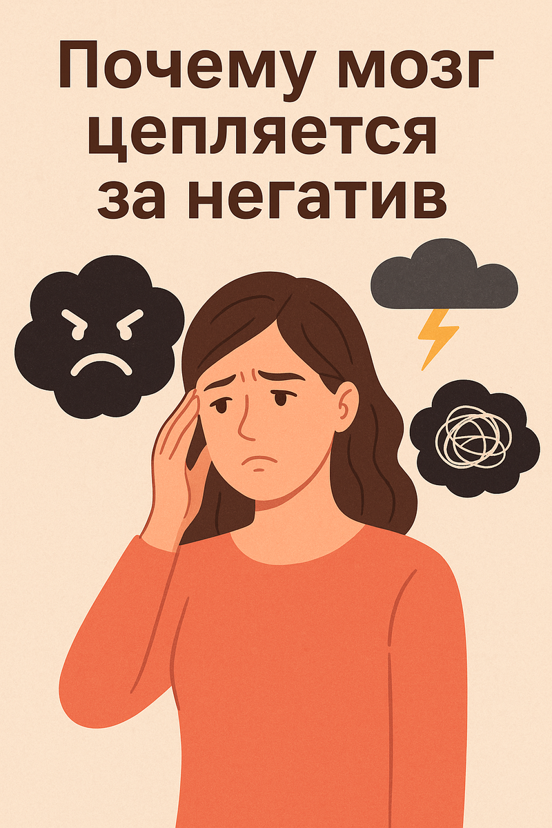Поэтому мозг «натренировался» фиксировать угрозы сильнее, чем радости. 🔹 У психологов это явление называется негативным уклоном (negative bias). Исследования показали: 📌 Работа. Начальник хвалит вас за проект, но вскользь замечает ошибку в отчёте. Что будет помнить мозг? Конечно, ошибку. 📌 Отношения. Партнёр сто раз поддерживал вас, но однажды резко ответил. И именно этот момент «засел» надолго. 📌 Новости. Сотни позитивных событий проходят мимо, но страшная авария или конфликт — сразу в фокусе внимания. Психологи из университета Вашингтона провели эксперимент: