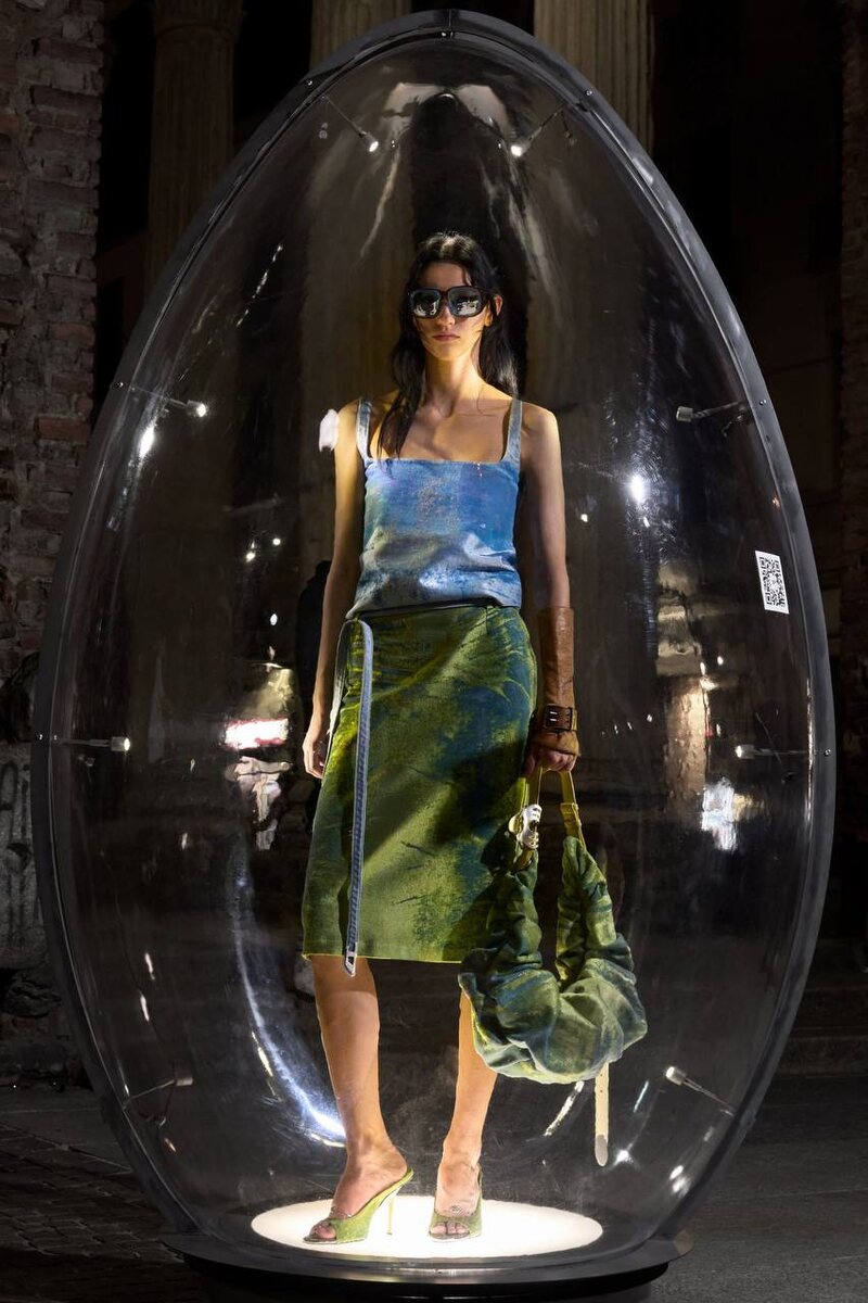 Миланская Неделя моды в этом сезоне удивила даже тех, кто привык к любым сюрпризам индустрии. Здесь было всё — неожиданные концепции, смелые эксперименты и знаковые прощания. Коллеги из Peopletalk собрали семь моментов, которые точно останутся в памяти. 1. Игры с пространством от Diesel Вместо стандартного подиума Diesel превратил город в интерактивную площадку: прозрачные купола с моделями расставили по всему Милану, словно скрытые объекты в городской игре. Те, кто находил их первыми, получали шанс примерить образы прямо с подиума. Город стал частью шоу, и каждый прохожий мог стать свидетелем модного эксперимента. 2. Неожиданный акцент на обувь На показе KNWLS внимание притягивали не платья и костюмы, а обувь: смелые кроссовки с необычной формой и яркими деталями. Они выглядели почти как арт-объект, играя с пропорциями и цветом. В этом сезоне обувь перестала быть аксессуаром — она стала главным героем. 3. Новый взгляд на Versace Дебют Дарио Витале в Versace оказался смелым сочетание