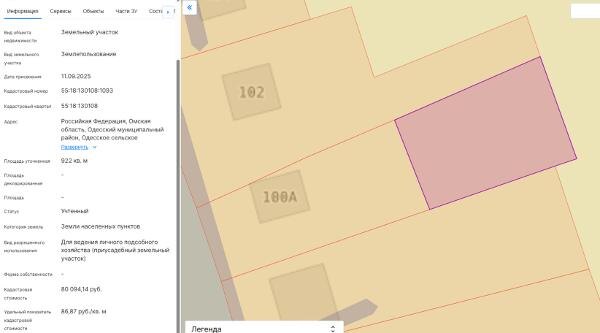 Название: Земельный участок с кадастровым номером 55:18:130108:1093 площадью 922 кв