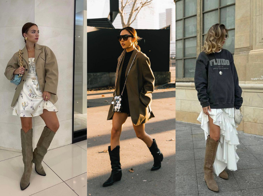 Если коротко - да. Но не так, как раньше. Казаки не умерли, просто... сменили контекст. Эти ботинки то уходят с модных радаров, то возвращаются с новой силой. То их считают базой, то списывают в "только под фестивали". А истина где-то посередине. Главное: сейчас мы не играем в ковбоев, мы вписываем казаки в городской стиль - как акцент. СПОСОБЫ НОСИТЬ КАЗАКИ В 2025 ГОДУ 1. Казаки + платье + теплые колготки Формула: мягкое женственное + грубое дерзкое = баланс. Выбирайте короткие платья, свитерные и прямые - и плотные матовые колготки. Не блестящие. 2. Казака + брюки, заправленные внутрь Этот прием снова с нами. И он работает. Если хотите, чтобы выглядело трендово - выбирайте широкие прямые брюки с мужским кроем и заправляйте их в высокие казаки. 3. Казаки + монохром Очень эффектный прием: сапоги и низ одного цвета. Серые казаки + серые брюки, молочные казаки + юбка в тон. Это визуально вытягивает и дает ощущение собранности. 4. Казаки + юбка миди + удлиненный жакет Женственно, структур