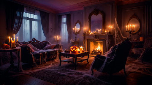 Входная зона погружает гостей в атмосферу праздника с первых секунд. Здесь я оформляю своеобразный "портал" между обыденным миром и мистическим пространством дома. Искусственная паутина на хэллоуин в углах, звуковые эффекты (устройства со звуками скрипа половиц или волчьего воя), ароматические свечи с запахом осени и гвоздики.