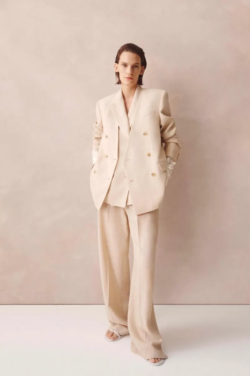 Иногда мода звучит громко. А здесь — едва слышно, но метко. Франческо Бертолини, креативный директор Ports 1961, продолжает выстраивать интеллектуальный гардероб без шума и пафоса: роскошь — в ощущениях, технология — в деталях кроя, эмоции — в молчании. Идея TÉCHNE не о гаджетах, а о мастерстве как технологии: как ткань держит форму, как строчка задаёт движение. Греческие отсылки — рельеф колонн, солёные волны, отблеск известняка — служат фоном для коллекции, которая разворачивается уверенно и сдержанно. Что внутри этой «тишины»? Скульптурные топы и платья с вручную заложенными складками, вертикальные ленты с необработанным краем — будто миниатюрные архитравы. Бахрома-кисточки на силуэтах в духе флэппер добавляют движение, не превращая лук в театральный. Комбинированные образы с перламутровыми пайетками поверх рифлёного букле — образец «умного шика»: комфорт телу, интерес глазу. Асимметричные вырезы приоткрывают плиссированные вставки по бокам — игра фактур вместо нарочитого декора. Ви