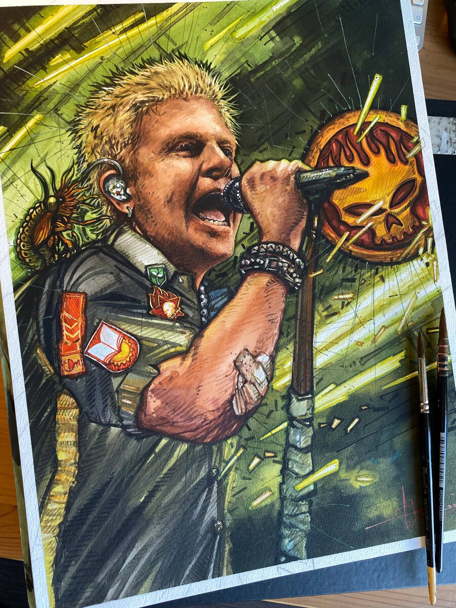 Новый рисуночек у меня наконец-то родился ! Декстер Холланд / theOffspring Странно что я его раньше не нарисовал, хотя я эту группу слушаю регулярно аж года с 92-93… #offspring #акварель #рисунок