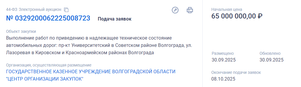 До 10 декабря чиновники решили преобразить улицу Лазоревую, простирающуюся от Красноармейского до Кировского районов, и проспект Университетский в Советском. Соответствующий электронный аукцион разместили на портале «Госзакупки» сегодня, 30 сентября. На приведение проезжей части в надлежащее техническое состояние из городского бюджета на 2025 год потратят 65 миллионов рублей. В роли заказчика выступило МУ «Комдорстрой» в лице директора Донецкова А. С. Подрядчик должен будет выполнить се работы качественно и в соответствии с законодательством. Также он обязуется обеспечить безопасность дорожного движения в местах проведения ремонта. Персонал обязательно находится на объектах в жилетах ярко-оранжевого цвета, а спецмашины — оборудованы проблесковыми маячками. После окончания работ территорию необходимо освободить от строительного мусора.