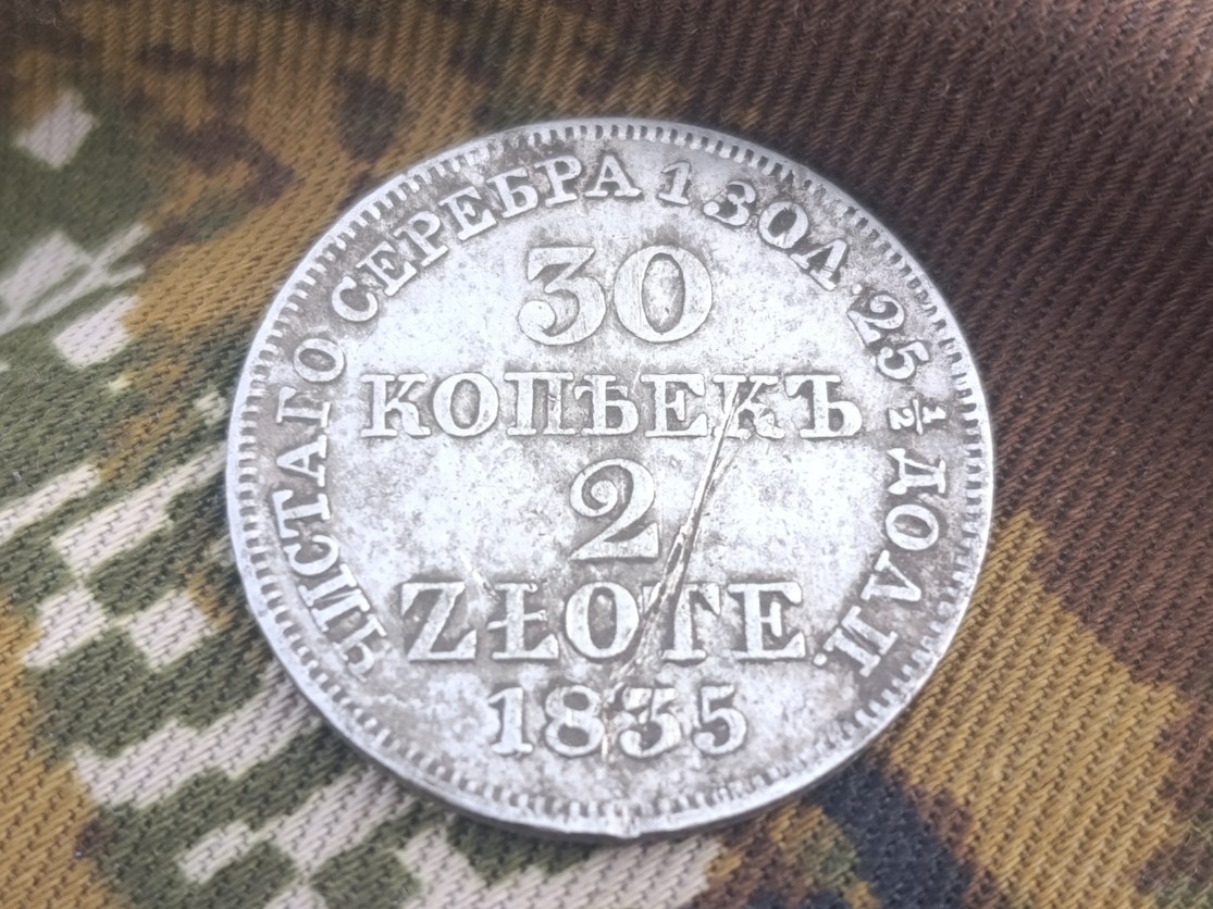 А на реверсе мы легко читаем номинал - "30 копеек". Чуть ниже - на польском языке указано "2 zlote". И год чеканки - 1835.