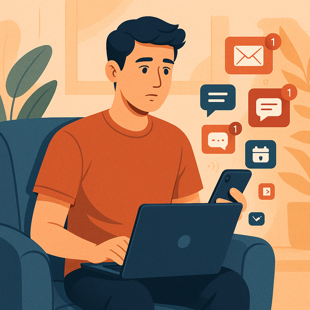 Помните, когда «идти на работу» означало конкретное место, например офис, и фиксированный график? Сегодня, благодаря нашим телефонам и ноутбукам, мы можем работать из любого места — из кафе, с пляжа, даже из собственной кухни! Звучит здорово, правда? Как полная свобода. Но на самом деле эта свобода стирает границы между работой и личной жизнью. Уведомления появляются в любое время суток. Видеоконференции могут проходить в любое время дня и ночи. Вы получаете сообщения от коллег по выходным. По сути, наша работа всегда с нами, прямо в кармане. Стало сложнее «выключаться», чем «включаться». Плюсы такой работы Вы можете работать из любой точки мира. Это гибко! Вы можете совмещать работу с путешествиями или семьей. Это открывает новые возможности: вы можете быть востребованным специалистом в другой стране, даже не переезжая туда. Недостатки Ваше личное время исчезает: трудно сказать, когда вы «на работе», а когда «дома». Вы постоянно устаете и рискуете перегореть. Существует давление, тре