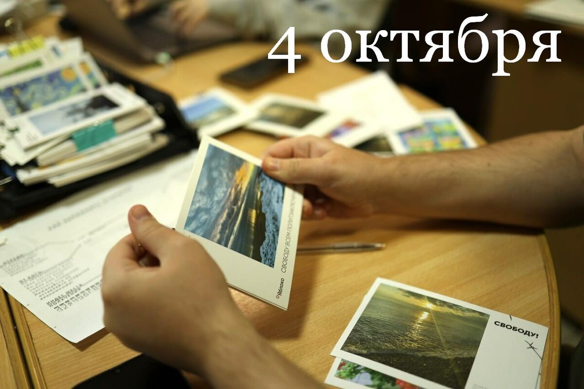 4 октября, суббота, с 15:00 до 18:00 ч. Красный проспект, 39, оф. 303 Количество россиян, лишенных свободы по политическим мотивам, растет каждый месяц. Сегодня таких только с уже вынесенным приговором и без учета узников совести по религиозным основаниям — более одной тысячи человек. Часто места лишения свободы — это унижения, плохие бытовые условия и отсутствие доступа к медицине. Проблемы со здоровьем, требующие срочного медицинского вмешательства, имеют более сотни политзеков. Для кого-то из них ваши слова могут стать лучом света. Каждая строчка способна дарить надежду и силу. Все участники Дней писем за круглым столом Новосибирского «Яблока» понимают, как важно в письмах политзаключенным поддерживать их, не давая скатываться в отчаянье. Присоединяйтесь!