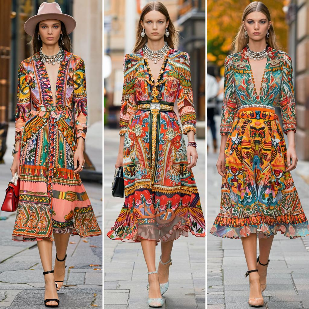 Цвет играет ключевую роль в создании образа. Осенью 2025 года дизайнеры предлагают яркие оттенки, которые прекрасно сочетаются с осенним настроением. Среди популярных цветов выделяются насыщенный бордовый, глубокий изумрудный, солнечный желтый и яркий оранжевый. Эти цвета создают контраст с осенней природой, делая образ ярким и запоминающимся.