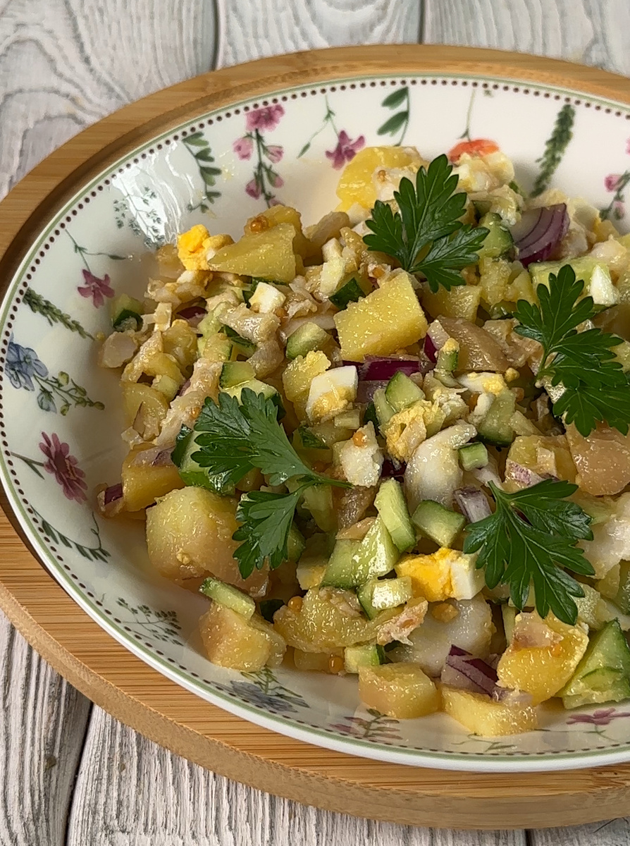 - Сочетает белок (рыба, яйца) и сложные углеводы (картофель) — даёт энергию и сытость.