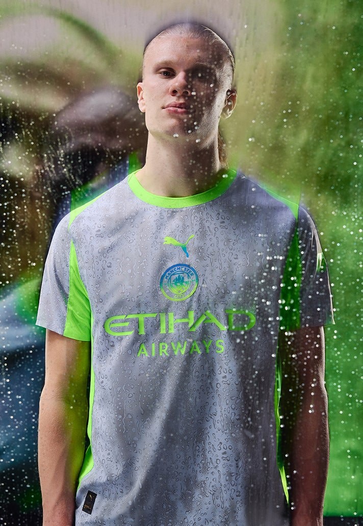 Футболка из третьего комплекта формы «Манчестер Сити» на сезон-2025/26, вдохновленная знаменитой манчестерской погодой