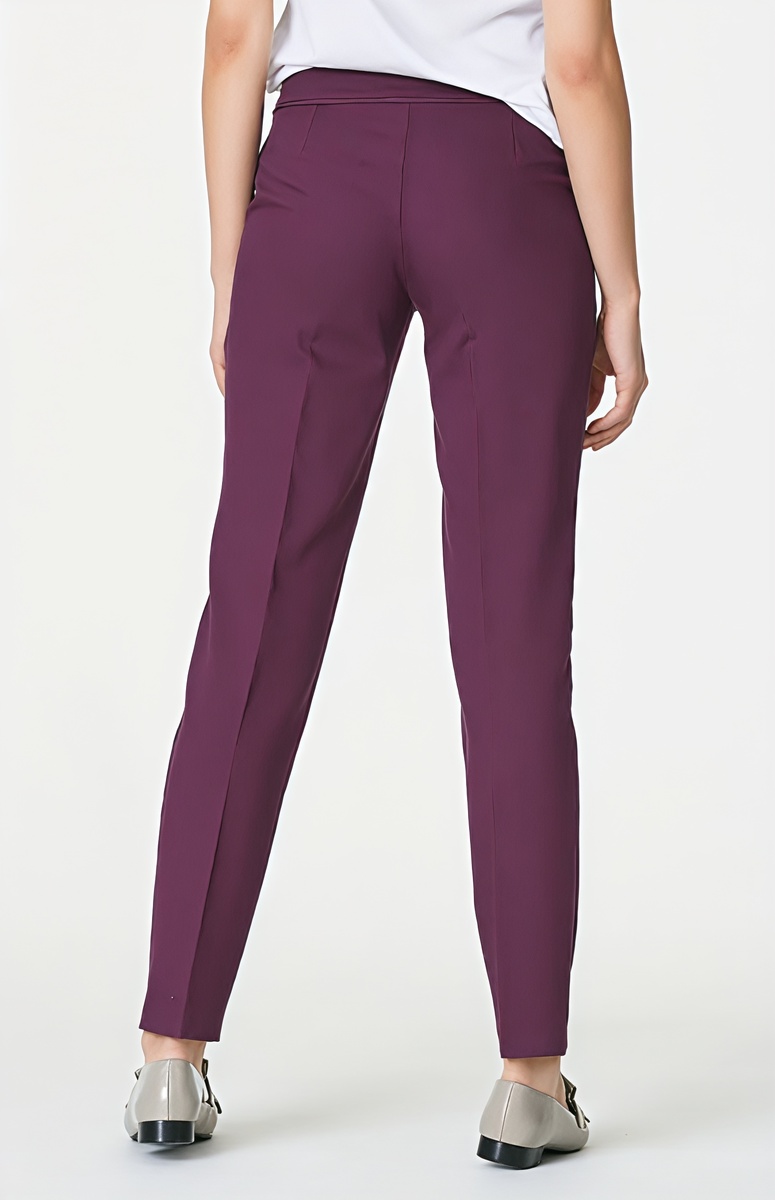 Фиолетовый прекрасен на благородных фактурах. Платье из шёлка или свитер из кашемира выглядят роскошно. Брюки сливового оттенка – альтернатива тёмным, жакет из твида добавит изысканности.