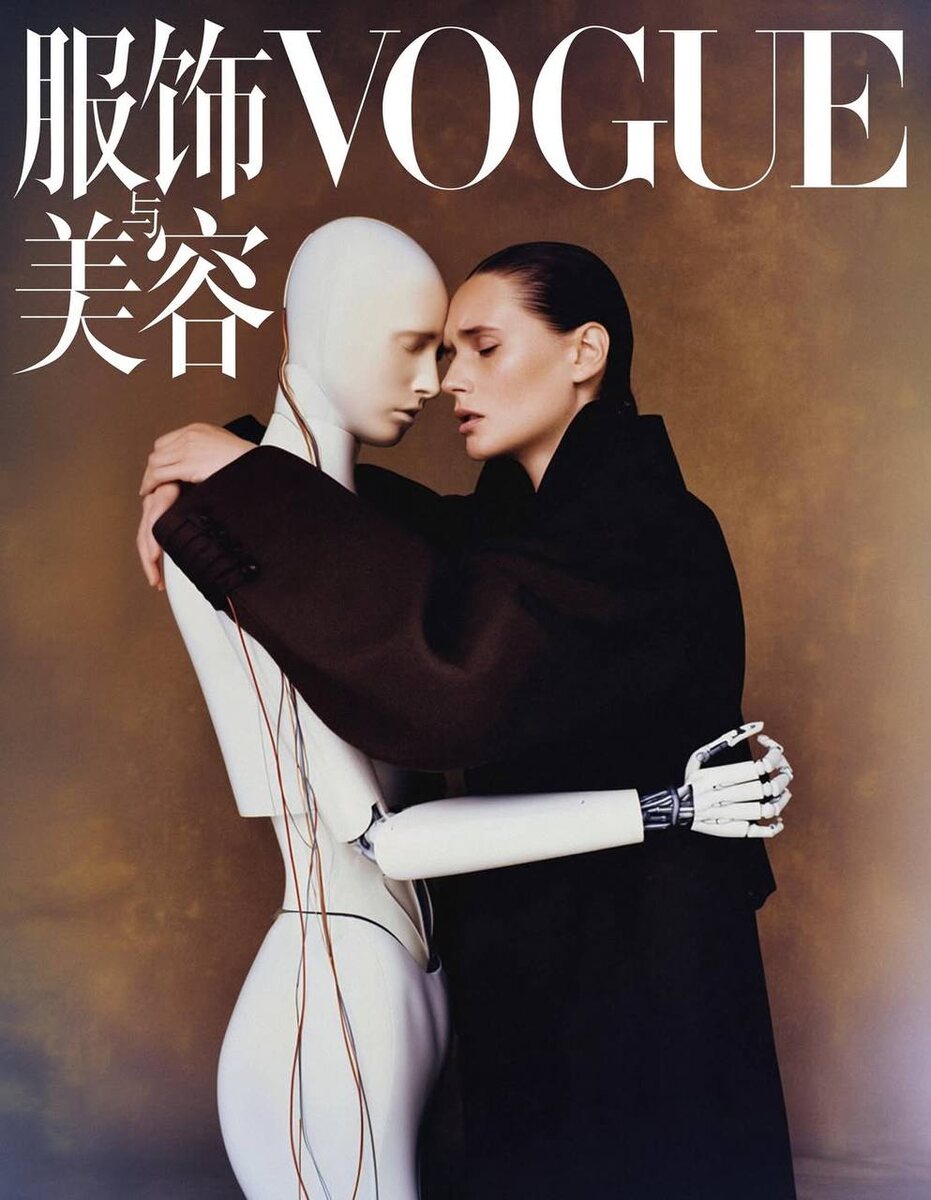 Это ИИ-обложки Vogue China к 20-летней годовщине издания. Делала их Сивиль де Сен-Луван, независимый креативный директор. Как вам? Я намеренно принесла побольше вариантов, потому что, если грубо пересказать пресс-релиз китайского Vogue, это должно символизировать интерес журнала к футуристическому искусству и нивым технологиям, а подход Сивиль — это использовать ИИ как инструмент со-творчества, а не заменять им человеческое искусство. Но если про фото с роботом и механической лошадью можно так и сказать, то как надо понимать девушку в цветах и девушку у моря? Что это, если не замена человека-фотографа? Вопросов по-прежнему больше, чем ответов. @make_your_style #technologies
