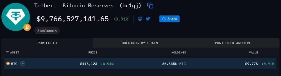 πΈΠ Π½Π°ΡΡΠΎΡΡΠ΅Π΅ Π²ΡΠ΅ΠΌΡ Tether Ρ ΡΠ°Π½ΠΈΡ 86 335 Π±ΠΈΡΠΊΠΎΠΈΠ½ΠΎΠ² Π½Π° ΡΡΠΌΠΌΡ $9,7 ΠΌΠ»ΡΠ΄