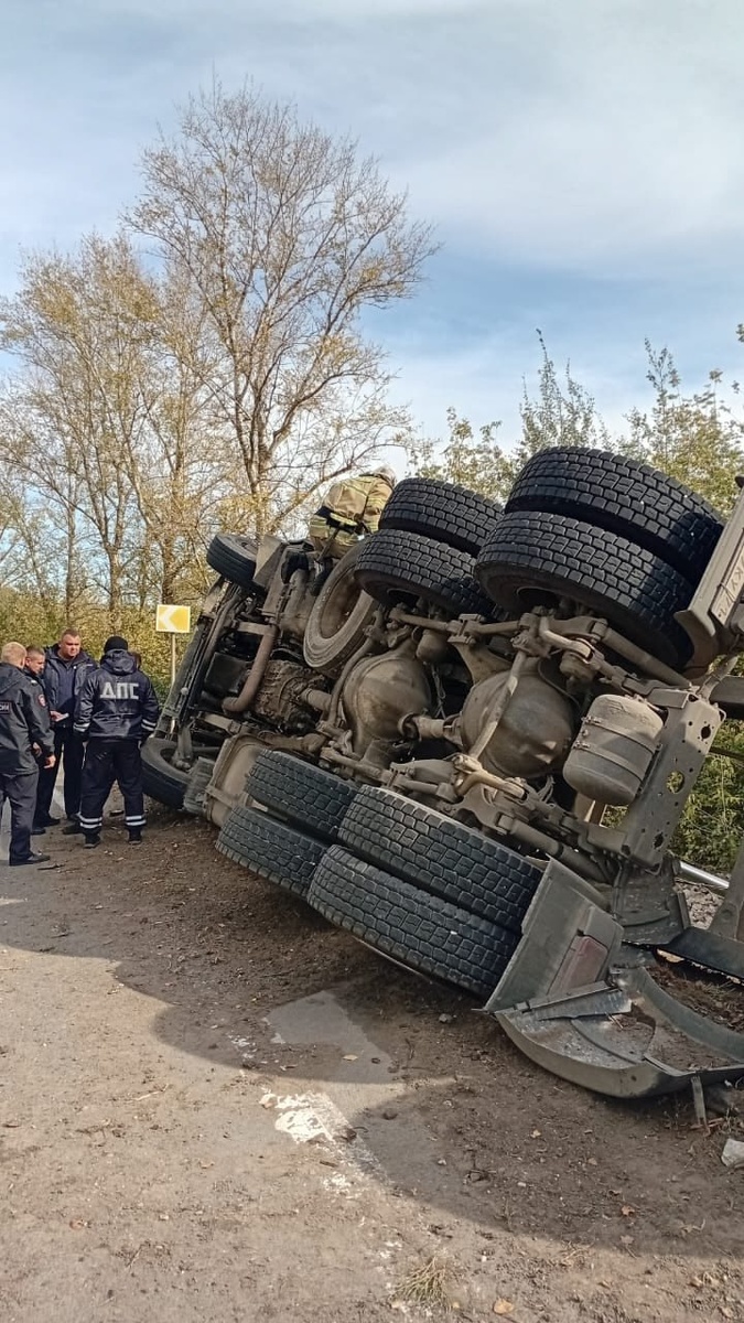 На трассе под Курском перевернулся большегруз с щебнем