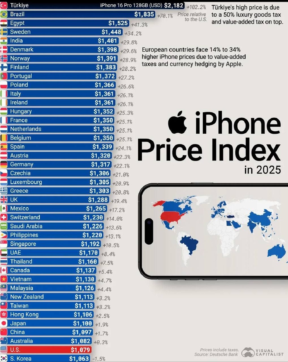 📊 Наглядная экономика: сколько мир платит за новый iPhone