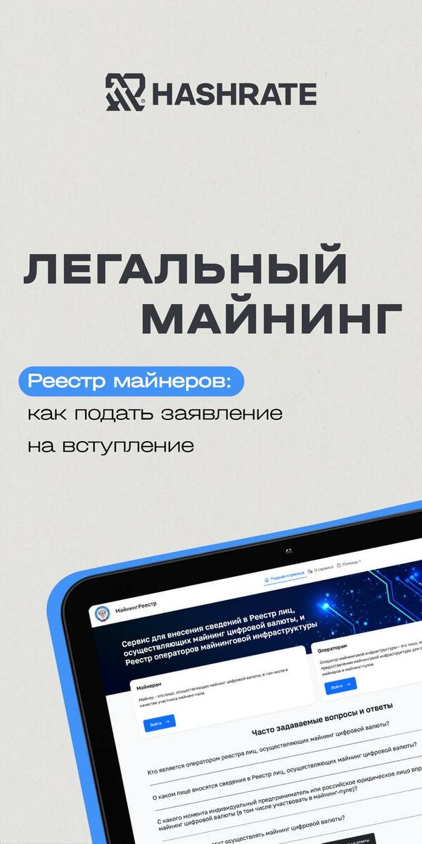 Мы продолжаем разбирать тему легального майнинга в России Ранее мы рассказали: про майнинг для физлиц, ИП и ООО, ищите в профиле ▶️ какие особенности есть у майнинга для физических лиц ▶️ важные моменты для ИП ▶️ что даёт амортизация и как она меняет итоговую прибыль для ООО Сегодня фокус на следующем шаге *️⃣Реестр по майнингу*️⃣ ⚡ Вступление в реестр – это ключевой момент для тех, кто хочет майнить официально и без рисков штрафов. Листайте карточки, чтобы узнать, как именно подать заявление и какие шаги вас ждут. Зачем это нужно? ✅ упрощает взаимодействие с государством ✅ даёт защиту бизнеса ✅ открывает доступ к законной инфраструктуре А уже скоро расскажем, какие штрафы ждут тех, кто будет майнить нелегально. Сайт ➕ Отзывы ➕ Написать