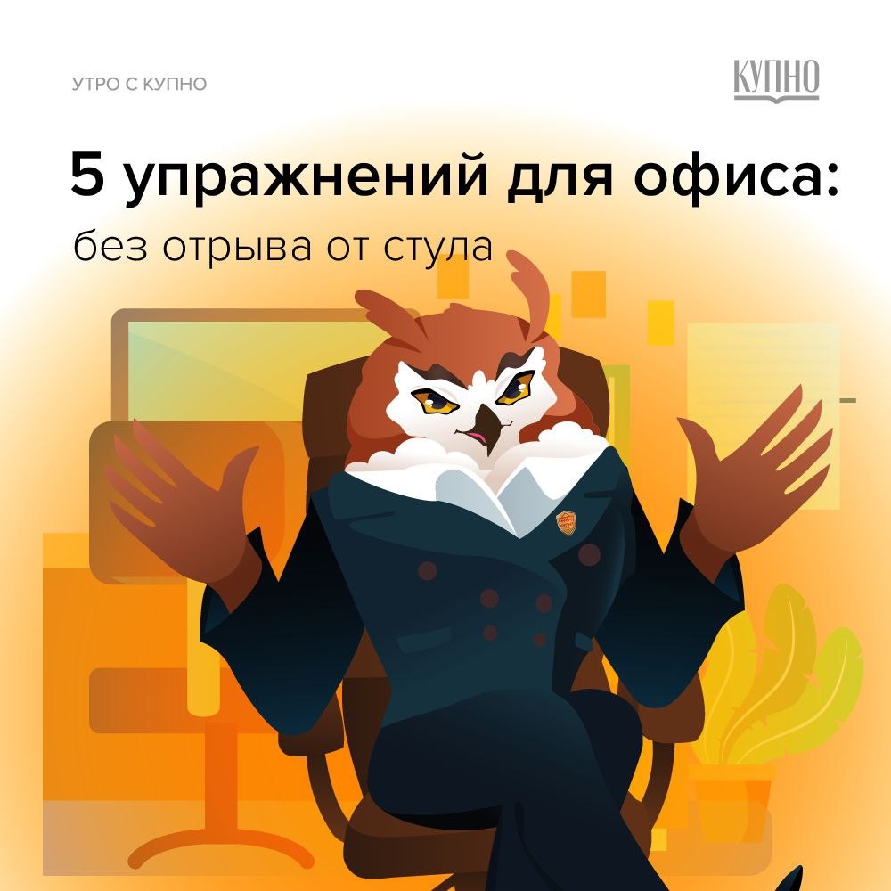 Знакомо чувство, когда после многочасовой работы за компьютером шея деревянная, спина ноет, и кажется, что вы превратились в один большой сустав? Это сигнал: телу срочно нужна перезарядка! Профессиональная гигиена труда — это не только правильное освещение, но и регулярная разминка. Предлагаем 5 простых упражнений, которые можно делать прямо сейчас, не привлекая лишнего внимания. Правило: Делайте плавно, без резких движений и боли. Дышите глубоко. Повторяйте каждое упражнение 5-8 раз. 1️⃣ Для шеи и плеч: «Сними корону» · Сядьте ровно, спина прямая. · Медленно и плавно опустите правое ухо к правому плечу. Задержитесь на 3-4 секунды. · Верните голову в исходное положение и повторите в левую сторону. · Эффект: Снимает напряжение с трапециевидных мышц, профилактика головной боли. 2️⃣ Для спины и груди: «Невидимый стул» · Сидя ровно, сцепите руки в замок на затылке. · Сведите лопатки вместе, раскрывая грудную клетку. Головой мягко надавите на руки, создавая легкое сопротивление. · Задержите