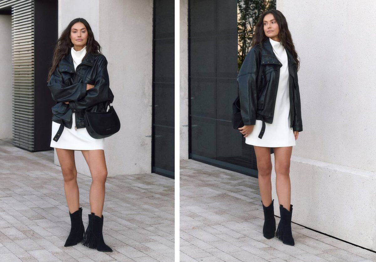 Отголоски ковбойского стиля видны до сих пор в современной моде. Правда, со временем, вестерн стал более приглушенным и повседневным. Чтобы следовать тренду, достаточно выбрать пару вещей стиля вестерн и комбинировать их с базовой одеждой. Отразить эстетику ранчо несложно, главное найти баланс и не переусердствовать. Вестерн имеет определенную специфику и сочетается не со всем. Вспомните, какие универсальные вещи есть у вас дома. Синие джинсы, белый или черный лонгслив, кожаный ремень — основа для любого стилистического решения, в том числе и для ковбойской эстетики. Они сочетаются с любым элементом вестерн, будь это замшевые сапоги, куртка с бахромой или рубашка в клетку. Наиболее удачное решение — синие расклешенные джинсы. Если говорить о верхней одежде, то для эффектных аутфитов выбирайте дубленку с овчиной, джинсовые и кожаные куртки. Традиционно бахрома встречается на замшевых и кожаных куртках. Но почему бы не пойти дальше? Разрешите себе носить аксессуары с бахромой. Еще один