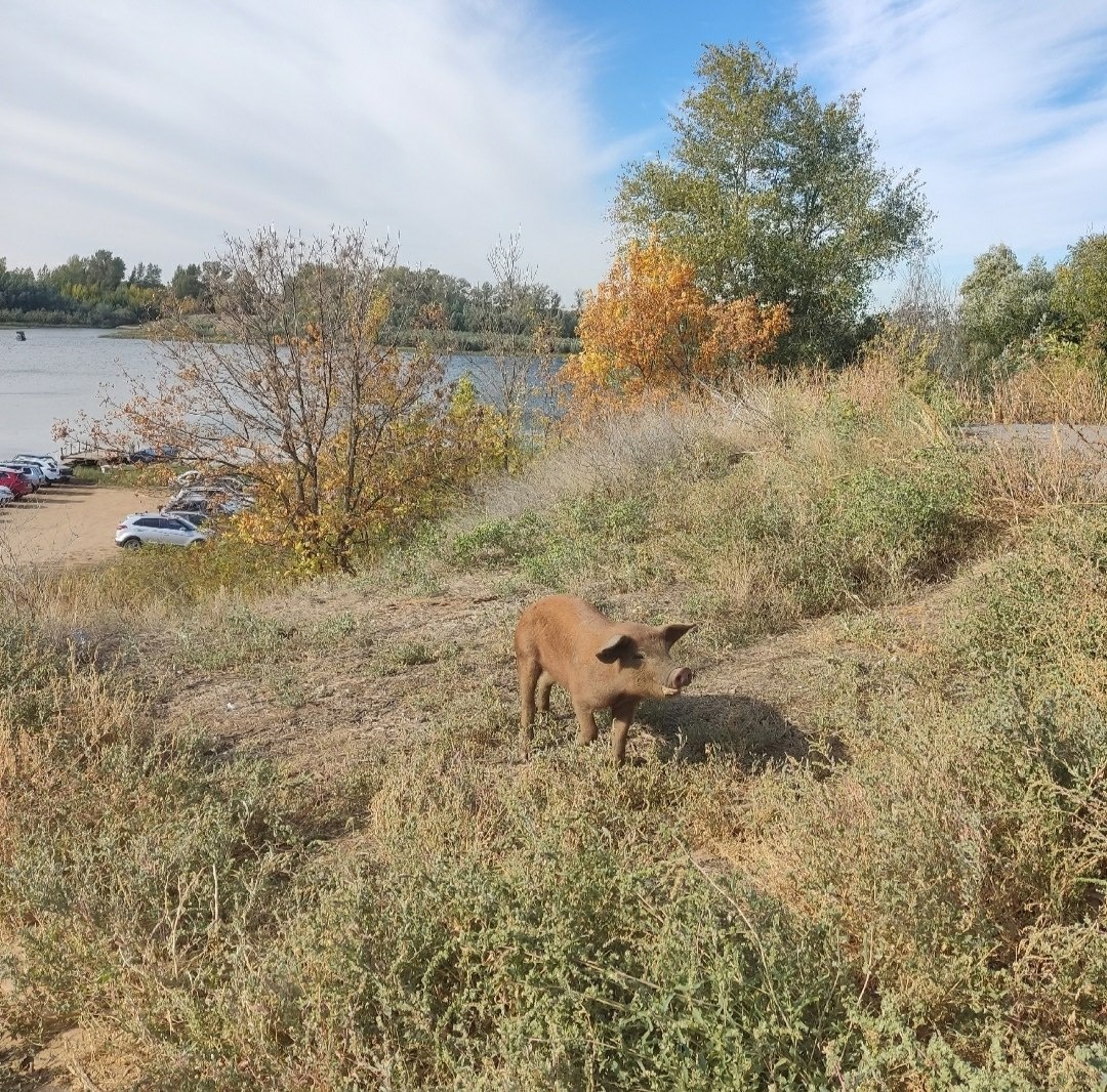 Кого только не встретишь на улицах нашего города🙃 Сразу два хряка были замечены сегодня местными жителями в разных частях Ахтубинска. Вот такой красавчик, видимо, собирался на отдых и попал в кадр в Северном, у переправы на остров Петриков. Ещё один искал вкусняшки в районе мясокомбината. 🐷 ☝После собак, лошадей и коров вы удивляетесь таким встречам в черте города или уже нет?