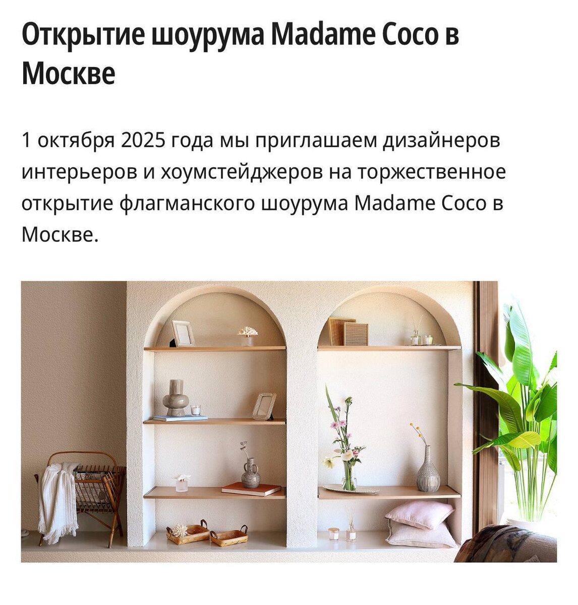 Дарю уникальную возможность моим подписчикам!!! 🤗 1 октября команда развития Madame Coco позвала меня на открытие флагманского шоурума для дизайнеров и хоумстейджеров. Дарю уникальную возможность моим подписчикам, кто интересуется дизайном интерьеров, попасть на это мероприятие. Вы сможете познакомиться с брендом Madame Coco, пообщаться с коллегами из среды, получить подарки от бренда и встретиться со мной лично. Пишите в комментариях: ХОЧУ на мероприятие, и мы отправим в личные сообщения ссылку на регистрацию.
