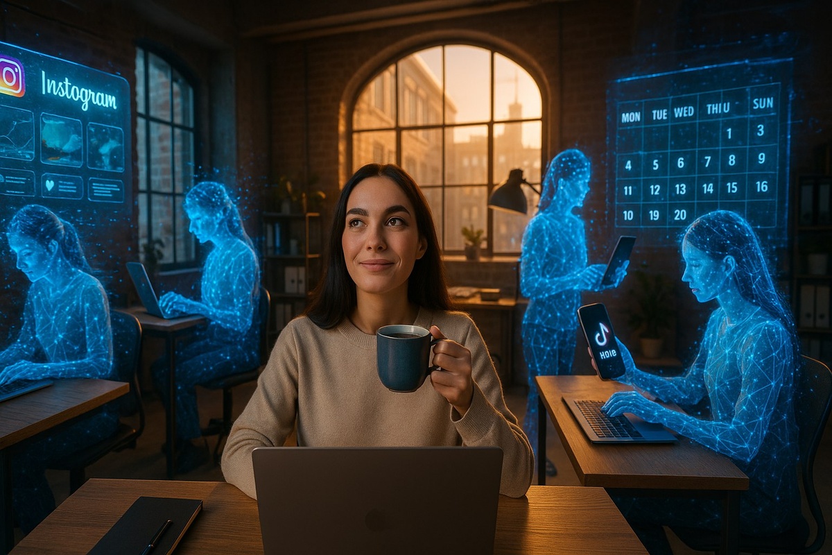 Вот как это выглядело раньше: копирайтер пишет пост три часа, потом дизайнер два часа делает картинку, SMM согласовывает еще час. Итого на один пост — шесть часов работы. А нейросеть генерирует текст за две минуты и визуал за минуту. Разница в сотни раз.