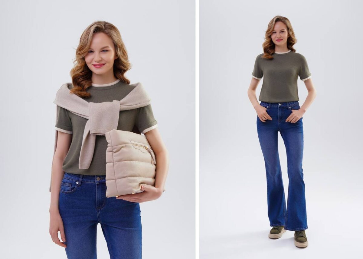 Трендовые джинсы bootcut появилась еще в начале 20 века. Сегодня сложно представить образ без этой модели. Стилисты в один голос хвалят bootcut за функциональность и простой крой. Джинсы синие, арт: 17909020. Джемпер женский зеленый, арт: h1609000. К популяризации джинсов имеют отношение множество бьюти-инфлюенсеров. Среди них особенное влияние оказали Бритни Спирс и Дженнифер Энистон. В 2025 году джинсы не теряют влияния и активно используются стилистами. Не все разбираются, в чем основное отличие клеша от bootcut. На самом деле, оно довольно простое. Сравнив две модели единожды, вы больше не ошибетесь.