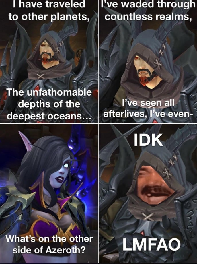 - Я путешествовал по другим планетам, я прошел через бесчисленное царство, я видел все загробные жизни, я даже - - Что находится по ту сторону Азерота - Я не знаю 😂 Вы знаете вов лучше, чем свою улицу? 📱Twitch📱YouTube📱Rutube 📱Dzen🌐wowloot.ru📱vk