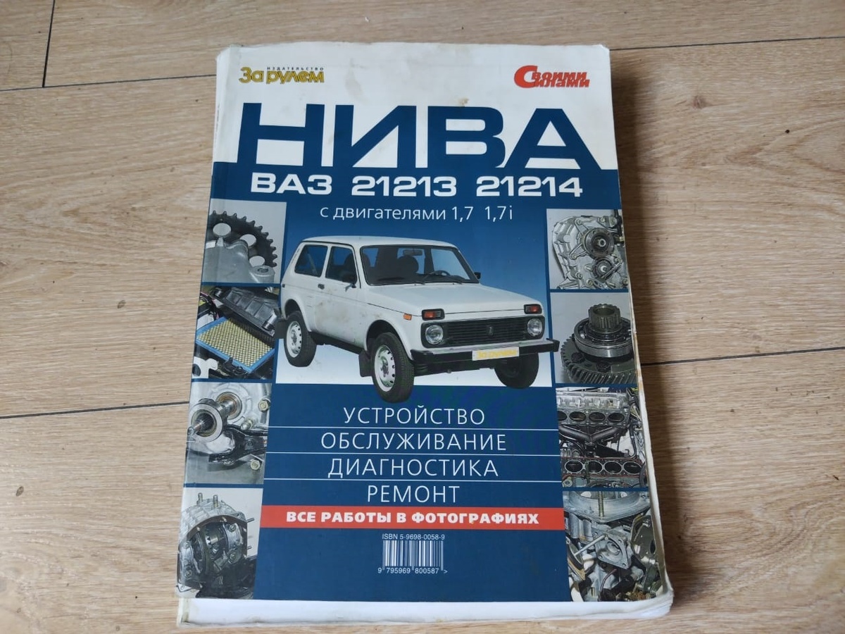 Это 2 книги. Первая руководство по устройству и обслуживанию автомобиля Нива. Эту книгу покупал мой муж, когда у нас еще была, как вы догадались, Нива. Больше 17 лет книге, наверно. 13 лет назад мы купили Ford, до этого еще успели пару машин поменять, поэтому книжка на даче лежит давненько.