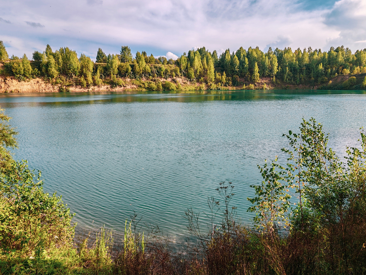 Это озера — бывшие карьеры, коих в нашем краю хватает. Писала уже о них, ссылка будет в конце статьи. В один из дождливых дней августа, выкроив время между потоками воды с небес, решили мы проехать до озер "Голубая лагуна", которые имеют происхождение от заброшенных карьеров и находятся в 15 минутах езды от моего дома (Кемерово). Но это смотря как ехать! Попасть к озерам можно через поселки Петровский и Промышленновский, где через первый будет посложнее и лучше на внедорожнике, через второй проедут все. Впервые мы туда ездили на Фиате, поэтому выбрали второй маршрут, а первый то куда живописнее оказался! Прогуляться осенним солнечным деньком да по красочному лесу, который то тут, то там озаряется яркими островками облепихи. Иногда слышен шум квадриков и попадаются грибники. Одно озеро поменьше и поглубже берегами, более закрытое, заросшее, оно как бы спрятано. Второе на открытом участке и больше размером. Второе больше пользуется популярностью у отдыхающих, первое, видимо, у грибников
