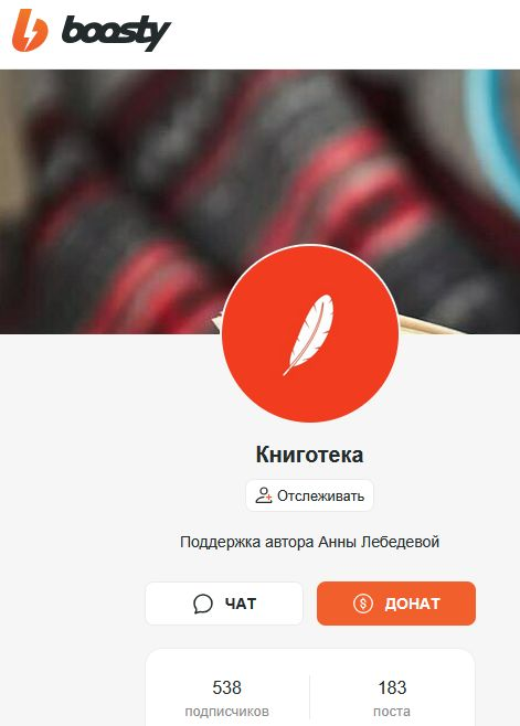 Уважаемые читатели! Если вам нравится творчество Анны Лебедевой, разрешите напомнить вам, что самые новые ее произведения, "с запахом типографской краски", вы можете раньше всех прочих ее поклонников прочитать на страничке Книготеки на площадке Boosty.to (Бусти), оформив подписку всего лишь за 50р в месяц. Эти деньги поддержат Анну и будут мотивировать ее к тому, чтобы продолжать творчество. Отписаться можно в любой момент.