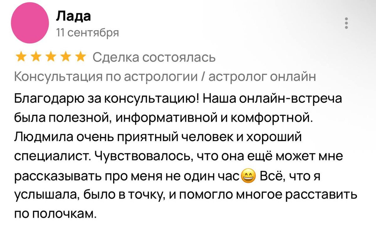 Друзья, давно не делилась отзывами, вот отзыв о консультации, которую проводила в начале сентября, очень приятно получить такой прекрасный