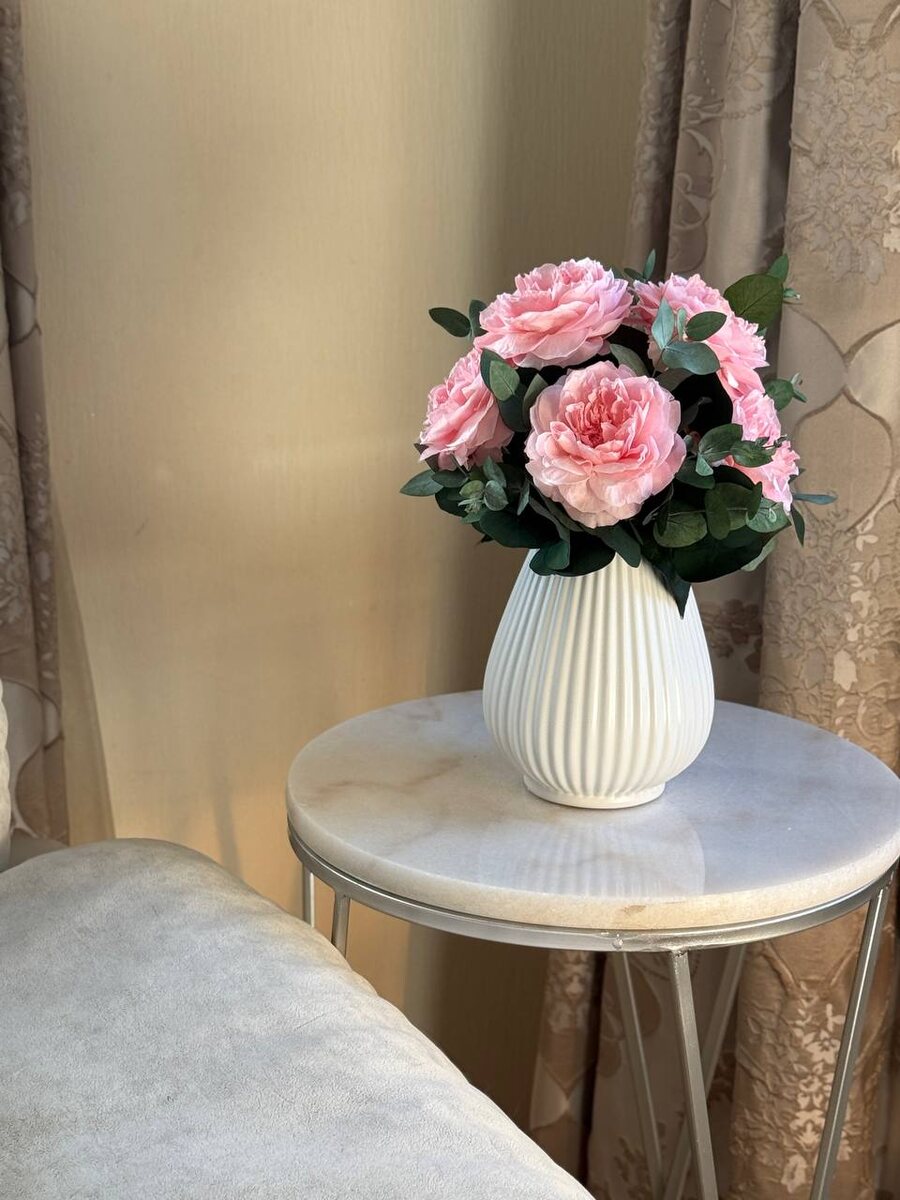 ⚜️Композиция из пионовидных роз нежно-розового оттенка «Tsumugi new». ⚜️Состав: стабилизированные пионовидных розы- 7 шт., ваза керамика, зелень стабилизированная микс. ⚜️Цена: 13500₽ (ваза входит в стоимость) ⚜️Размер с учётом вазы: высота ~25 см, диаметр ~17 см. ⚜️Доставка по Москве в пределах МКАД 600₽, возможен самовывоз м. Сходненская. ⚜️Заказы принимаем на WhatsApp https://wa.me/79261344455 или по телефону 89264344455