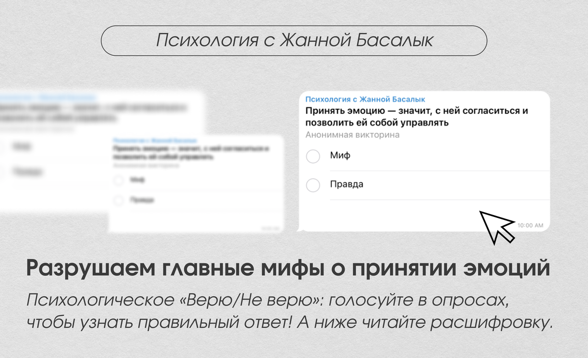 Давайте сыграем в психологическое «Верю/Не верю» и разберемся, где правда, а где — опасное заблуждение. В моем телеграм канале: "Психология с Жанной Басалык" голосуйте в опросах, чтобы узнать правильный ответ! А после читайте расшифровку.