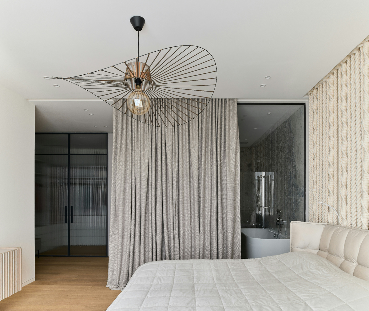 В работе над дорогими интерьерами текстиль играет не вспомогательную, а одну из ключевых ролей. Он отвечает за настроение пространства, объединяет архитектуру и мебель в единую композицию. Особенно ценятся натуральные материалы: шёлк, лён, хлопок высокого гребня, шерсть и кашемир воспринимаются как знак качества и хорошего вкуса. Они создают атмосферу, в которой сочетаются статус и комфорт. Эти ткани любят не только за красоту, но и за особые тактильные свойства. К ним приятно прикасаться, они формируют ощущение уюта, которого невозможно достичь с помощью синтетики. При этом современные дизайнеры нередко добавляют в композицию технические волокна — они помогают варьировать фактуру и усиливают визуальные акценты. 1. Закладывайте текстиль с самого старта проекта.