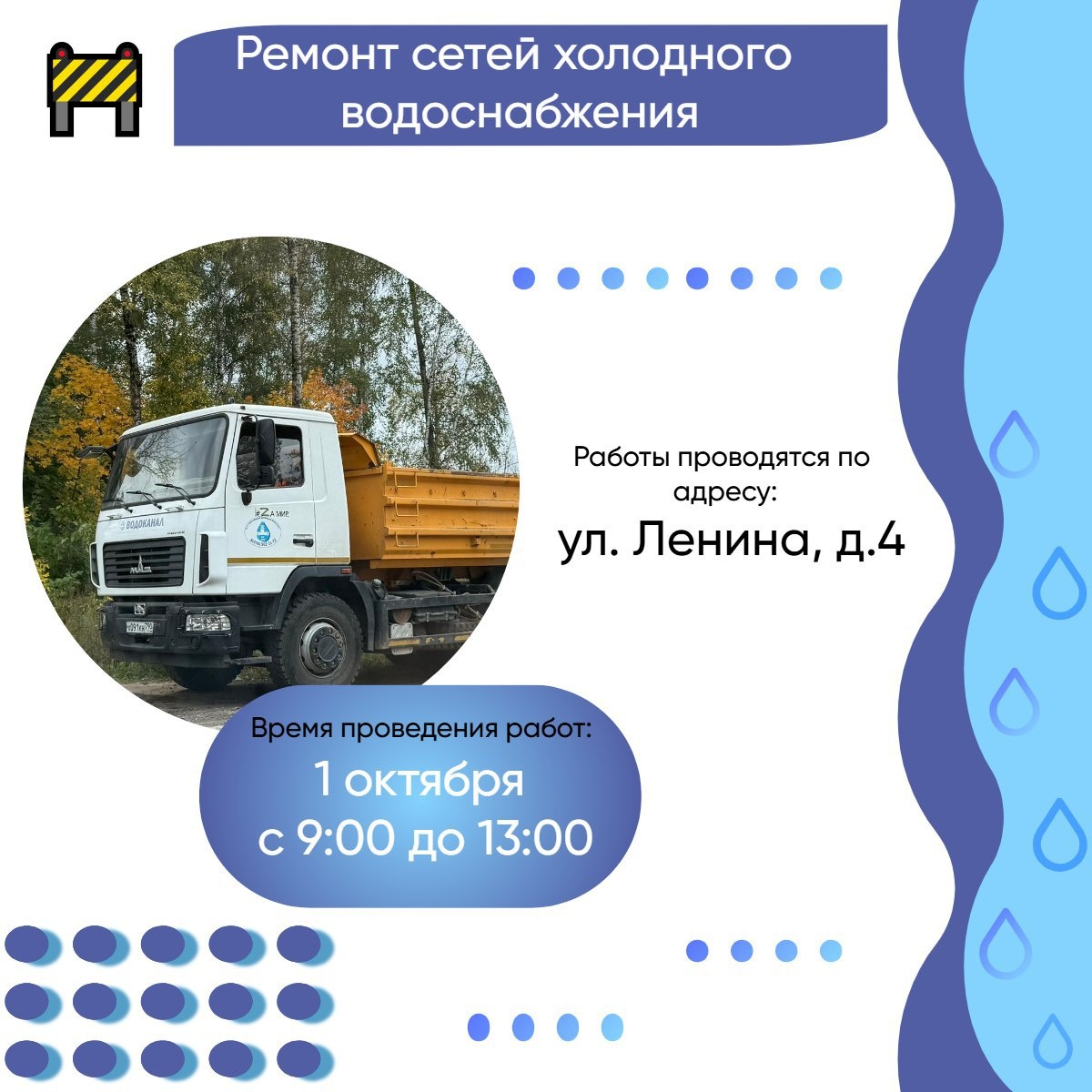 ΠΎΠ»ΠΎΠ΄Π½ΠΎΠ΅ Π²ΠΎΠ΄ΠΎΡΠ½Π°Π±ΠΆΠ΅Π½ΠΈΠ΅ 1 ΠΎΠΊΡΡΠ±ΡΡ, Ρ 9:00 Π΄ΠΎ 13:00 ΠΏΠΎ Π°Π΄ΡΠ΅ΡΠ°ΠΌ: β‘οΈΡΠ». ΠΠ΅Π½ΠΈΠ½Π°, Π΄.2, Π΄.4, Π΄.6; β‘οΈΡΠ». ΠΠ½ΡΡΠΈΡΡΡΡΠΊΠ°Ρ, Π΄.4, Π΄.6, Π΄.7, Π΄.9, Π΄.11, Π΄.13, Π΄.15, Π΄.16, Π΄.17, Π΄.18, Π΄.18Π, Π΄.18Π, Π΄.19, Π΄.21, Π΄.23, Π΄.25, Π²Π»Π°Π΄Π΅Π½ΠΈΠ΅ 5 ΡΡΡΠΎΠ΅Π½ΠΈΠ΅ 2; β‘οΈΡΠ». ΠΠ½ΡΡΠΈΡΡΡΡΠΊΠ°Ρ, Π΄.13Π° - Π΄Π΅ΡΡΠΊΠΈΠΉ ΡΠ°Π΄ β64 Β«ΠΠ°Π»ΡΡΠΎΠΊΒ». ΠΡΠΈΠ½ΠΎΡΠΈΠΌ ΠΈΠ·Π²ΠΈΠ½Π΅Π½ΠΈΡ Π·Π° Π΄ΠΎΡΡΠ°Π²Π»Π΅Π½Π½ΡΠ΅ Π½Π΅ΡΠ΄ΠΎΠ±ΡΡΠ²Π°. Π’Π΅Π»Π΅ΡΠΎΠ½ Π°Π²Π°ΡΠΈΠΉΠ½ΠΎ-Π΄ΠΈΡΠΏΠ΅ΡΡΠ΅ΡΡΠΊΠΎΠΉ ΡΠ»ΡΠΆΠ±Ρ Π²ΠΎΠ΄ΠΎΠΊΠ°Π½Π°Π»Π°: 8-496-562-1172. ΠΠΎΠ΄ΠΏΠΈΡΠ°ΡΡΡΡ | ΠΠ°ΠΊΠ°Π½ΡΠΈΠΈ | ΠΡΠΈΠ΅ΠΌΠ½Π°Ρ #Π©ΡΠ»ΠΊΠΎΠ²ΡΠΊΠΈΠΉΠΠΎΠ΄ΠΎΠΊΠ°Π½Π°Π» #Π Π΅ΠΌΠΎΠ½Ρ #ΠΠΎΠ΄ΠΎΡΠ½Π°Π±ΠΆΠ΅Π½ΠΈΠ΅ #Π½ΠΎΠ²ΠΎΡΡΠΈΒ #Π©Π΅Π»ΠΊΠΎΠ²ΠΎ