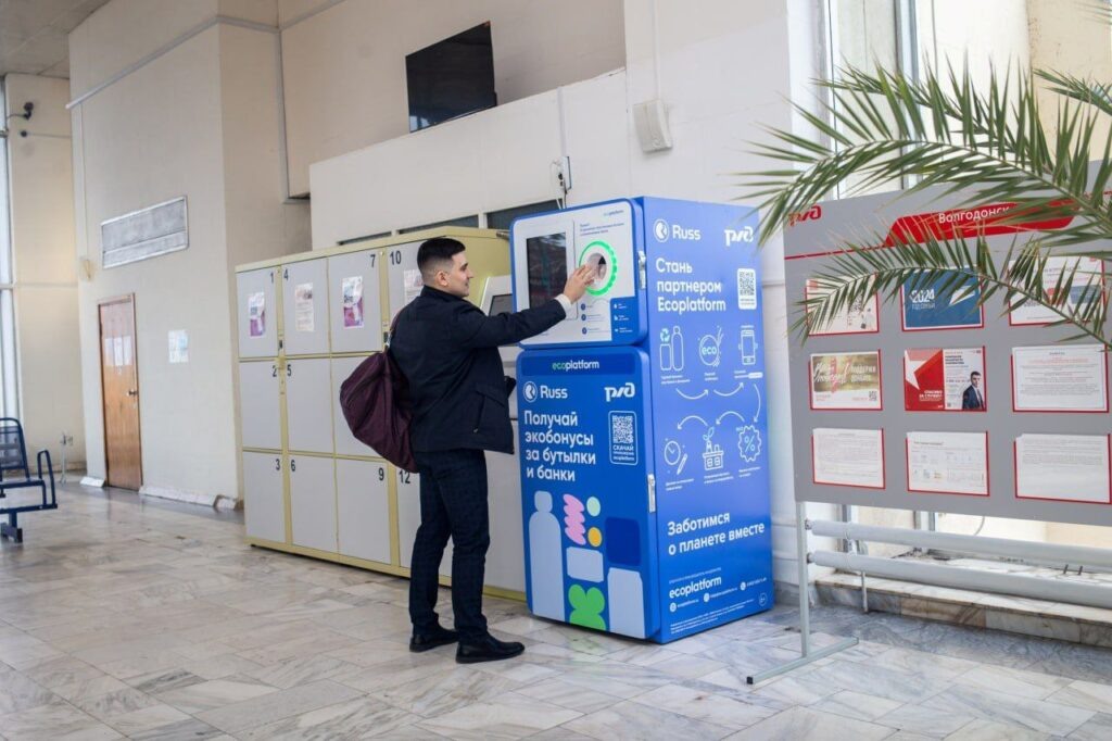 Сейчас на 27 вокзальных комплексах СКЖД работает 32 фандомата. В них тара хранится до заполнения устройств, затем отправляется на предприятия для сортировки, измельчения и повторного использования. Из нее производят новые товары: бутылки, одежду, обувь и мебель.